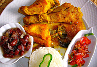 • Saupoudrez le cari de persil et le servir accompagné de haricot rouge, riz, et rougail tomates (mélange de dés de tomates, d’échalote, de gingembre râpé, de piment et d’huile)